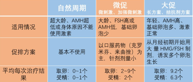现在临床上常用的促排卵方案有自然周期、微刺激、加强微刺激、拮抗法、短方案和长方案。按促排程度从小到大分,前三种属于微促,而后三种则属于大促。
