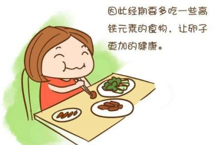 血液中往往含有大量铁元素,铁元素能够为卵子提供充足养分。因此,想要卵子更健康,就需要在月经期间多吃菠菜、动物内脏等高铁食品及复合维生素,补充卵子的养分。