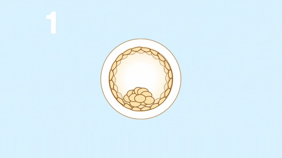 取卵后第5-7天(D5-D7).胚胎继续卵裂,细胞数增加之后,发生细胞分化,形成外胚滋养层(将来形成胎盘和绒毛羊膜等妊娠组织)及内细胞团(将来发育成胎儿),胚胎中央出现腔体,此阶段的胚胎称为囊胚。