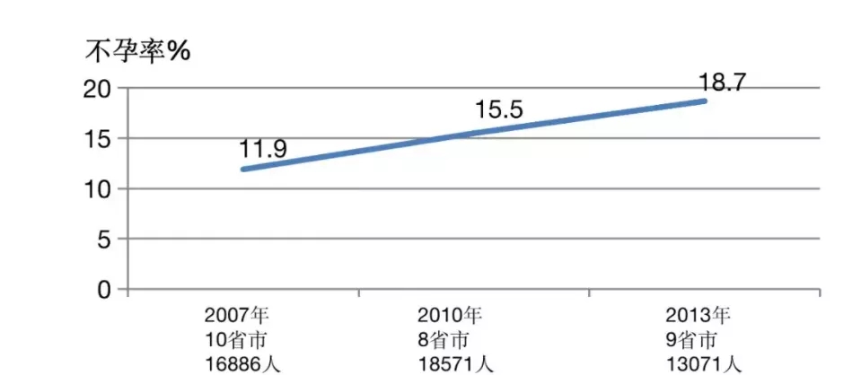 自2007年到2013年,在全国进行抽样调查,发现女性不孕的发生率逐年上升。