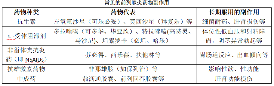 并且,这些疗法或多或少地有点副作用,像抗生素,吃多了可能导致细菌耐药,严重的可能出现伪膜性肠炎等。α-受体阻滞剂有出现低血压的风险,非甾类药物则对胃肠有刺激作用。