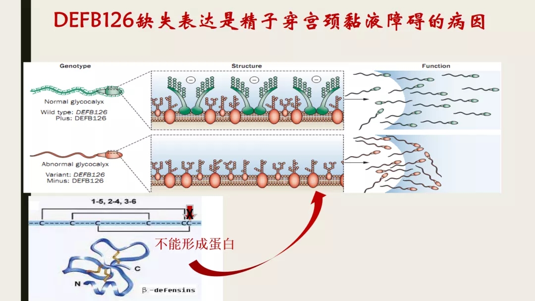 DEFB126缺失表达是精子穿宫颈黏液障碍的病因,图片来源于陈国武主任,下同