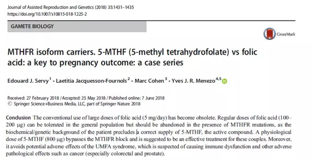 有学者认为【3】,常规使用大剂量叶酸(5毫克/天)已经过时。小剂量(0.8mg)的5-甲基四氢叶酸是大剂量(5mg)完美替代方案。